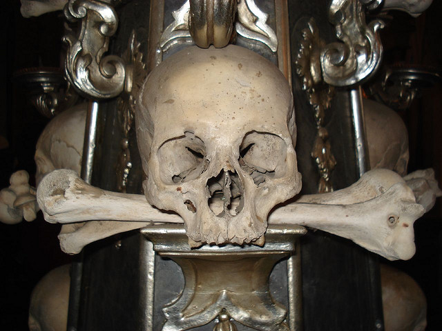 The Sedlec Ossuary is a small Roman Catholic chapel in Sedlec, a suburb of Kutná Hora, about an hour on the train from Prague. Word is the ossuary contains the skeletons of between 40,000 and 70,000 people.