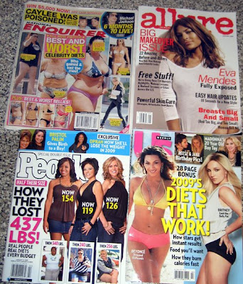 Four really terrible celebrity magazines because they’re the new year’s resolution diet-makeover-before/after issues. How I could I resist these: