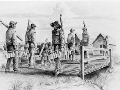 Before long, some of the men in the barracks organized themselves into water brigades, eight to ten prisoners taking turns fetching water for the others, especially those too weak to walk. The designated Gunga Din attached the canteens to a bamboo pole and took his place in the long queue that wound its way through the camp.