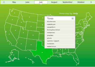 Epicurious offers a totally handy interactive map that shows what’s in season each month of the year in every state in the U.S….