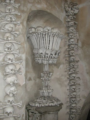 The Sedlec Ossuary is a small Roman Catholic chapel in Sedlec, a suburb of Kutná Hora, about an hour on the train from Prague. Word is the ossuary contains the skeletons of between 40,000 and 70,000 people.